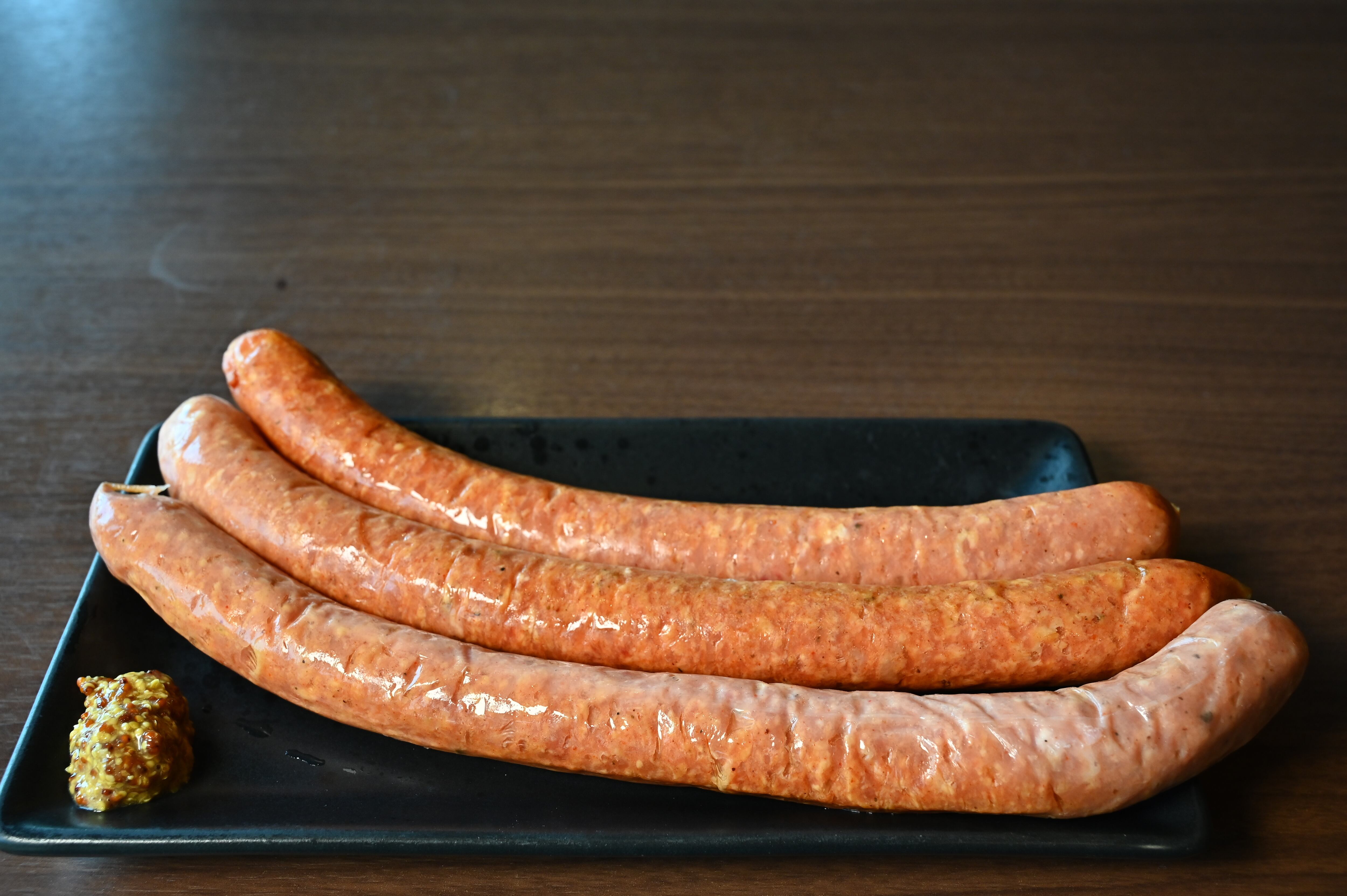 信州新町産サフォーク羊肉を使用した、旨みたっぷりの特製ソーセージ。 クセが少なく、噛むほどに広がる上品な羊肉の味わいをお楽しみいただけます。 ボイルした後にフライパンで焼き目をつけて召し上がっていただくのがおすすめです。 内容量:サフォーク入り特製ソーセージ3本